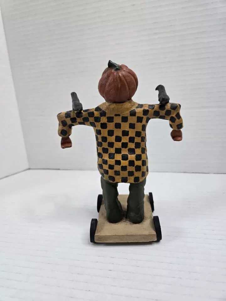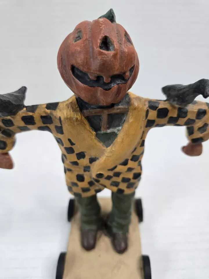 Bethany Lowe Pumpkin Head Jack O Lantern Scarecrow On Wheels Figurine Halloween