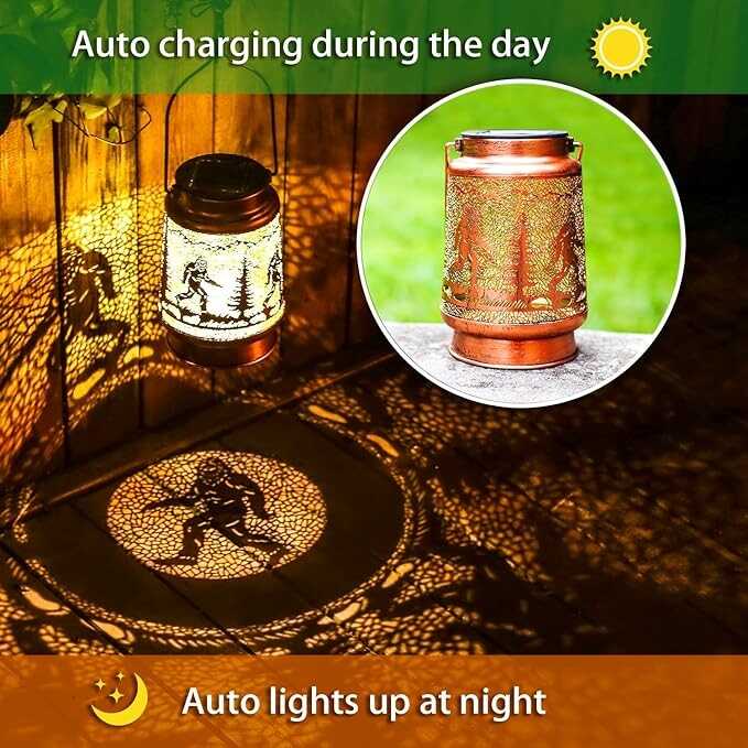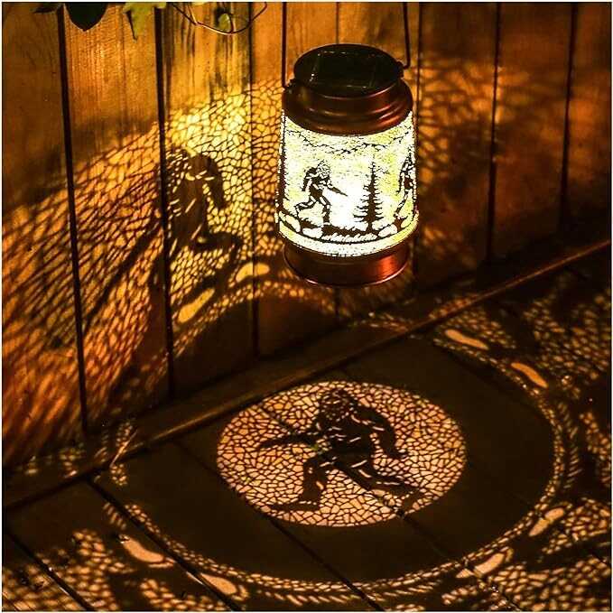 • 【Perfect Garden Decorations】- Bigfoot solar lantern can project unique and beautiful patterns in a dim environment, creating a gorgeous and warm atmosphere to bring life and fun to your garden and attract your family or friends. The unique hollow out design and beautiful antique bronze color give it an artistic touch, perfect for decorating gardens, backyards, corners, Outside, sidewalks and many other scenes.