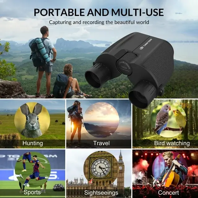 • COMPACT AND LIGHTWEIGHT-The folding binoculars are compact and lightweight enough to throw in your bag or backpack and hold with one hand to be used whenever you need it.