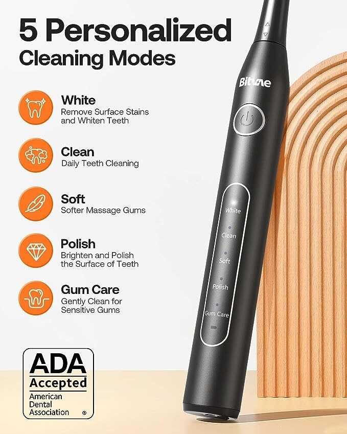 Bitvae Electric Toothbrush for Adults - Ultrasonic Electric Toothbrushes with 8 Brush Heads, ADA Accepted Power Rechargeable Toothbrush with 5 Modes, Smart Timer, Black D2