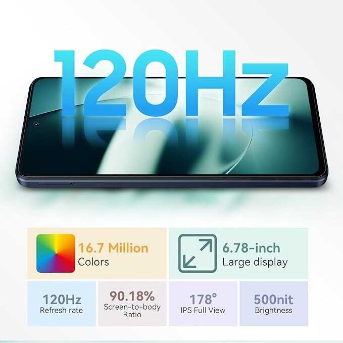 • ?【120Hz 6.78-inch Large Screen & Smart-K Box Speaker】? Blackview SHARK 8 smart phone features a 6.78-inch 2.4K display, offering over 90% screen usage and a smooth 120 Hz refresh rate (1080 x 2460), providing a more comfortable viewing experience. High-fidelity colors, clear images, and Smart-K box speaker technology make movies and games more exciting. Enjoy full viewing angles, 10-point touch technology, and a bright display of up to 500 nits for happy moments anytime.