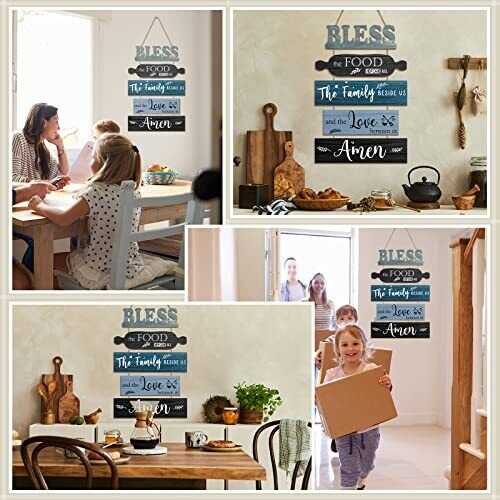 Bless The Food Before Us Sign Farmhouse Kitchen Wall Decor Rustic Dining Room...