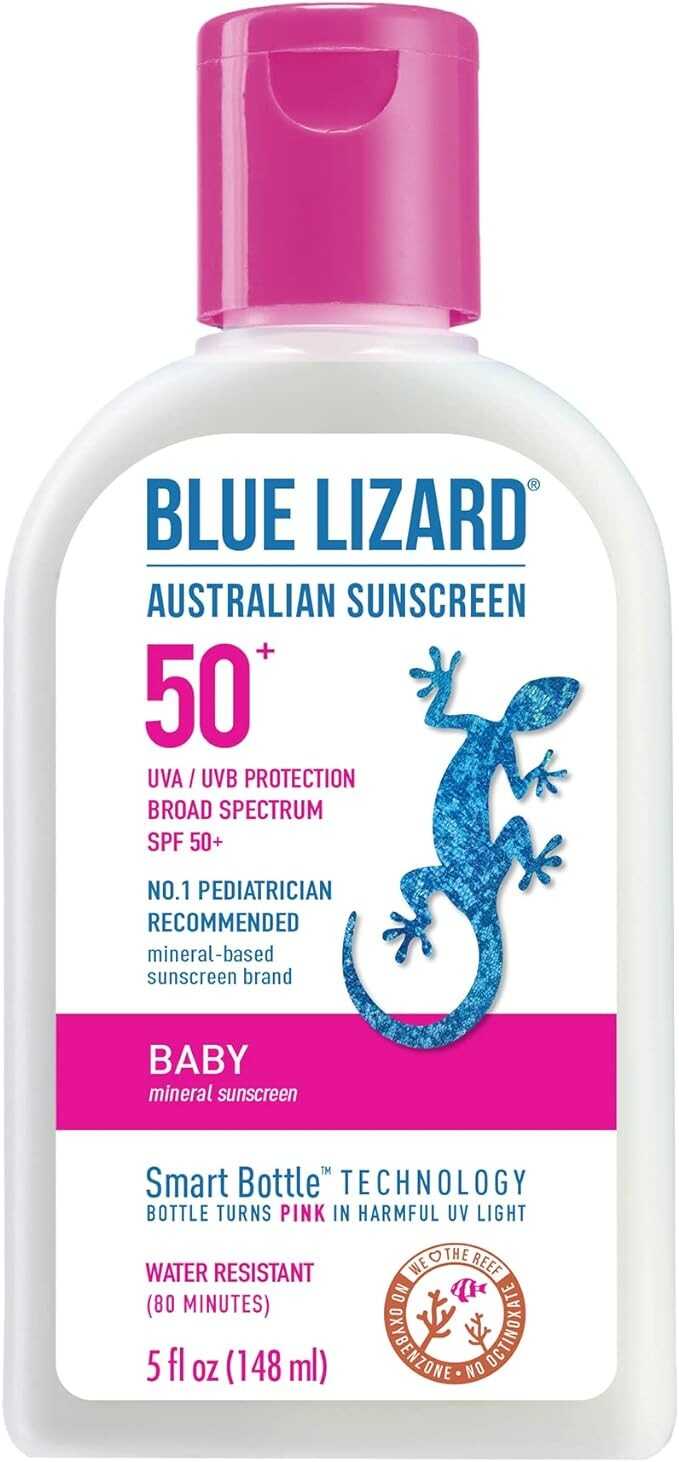 Blue Lizard Baby Mineral Sunscreen with Zinc Oxide, Water Resistant, UVA/UVB Protection with Smart Technology - Fragrance Free, Unscented, SPF 50 - 5 Fl Oz - Bottle