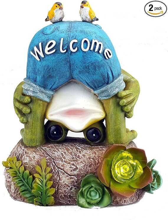 • Frog with 2 birds Solar Garden Light - Add vibrant color to your backyard - the Frog with 2 Birds and Solar powered flower