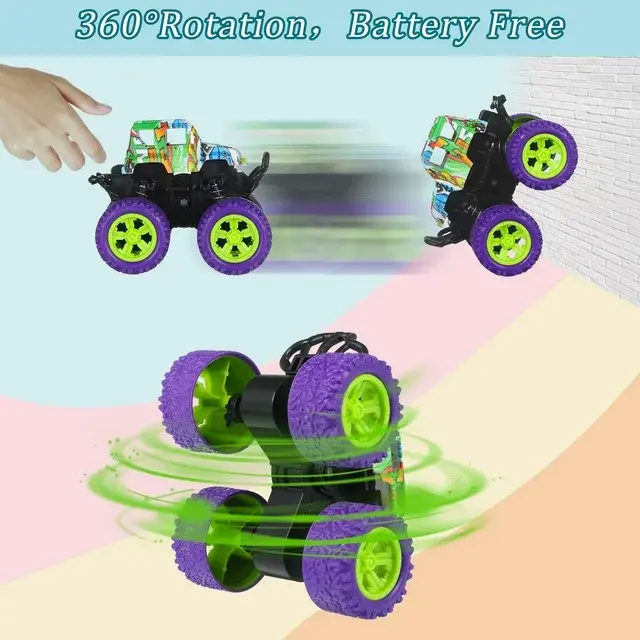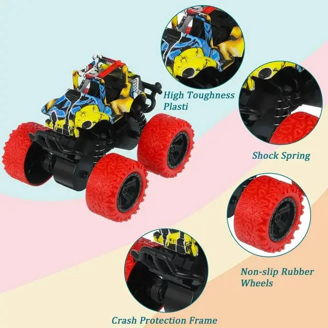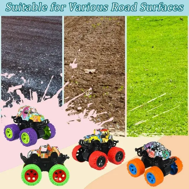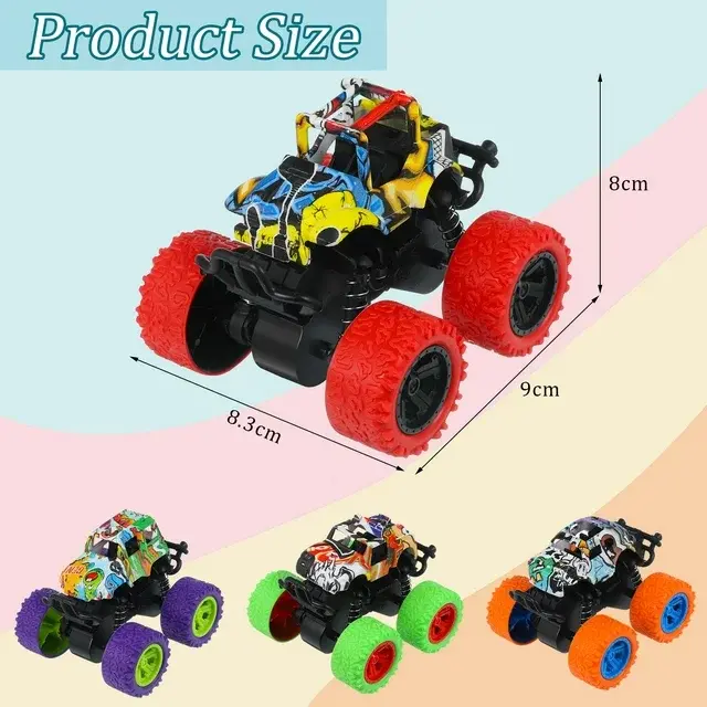 Different from ordinary truck toys, these friction toy cars can roll forward and backward to accelerate their power, just push the toy truck hard to make the wheels rotate, then turn the car straight to achieve 360° rotation stunts easily. Your young ones can easily master this cool stunt show for hours of fun. Popular toddler toy for your kids or toy car lovers.