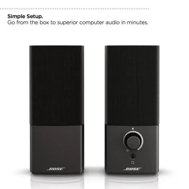 • Bose computer speaker system is quick and easy to set up with various computer systems and PCs, from desktop to laptop