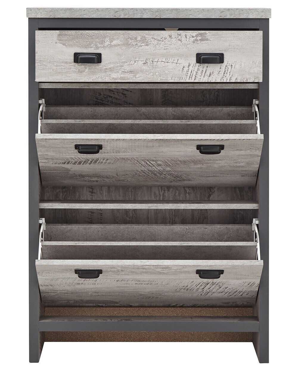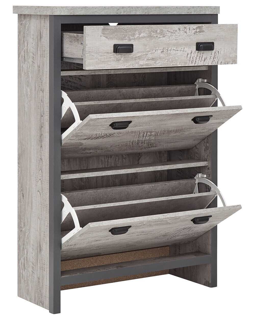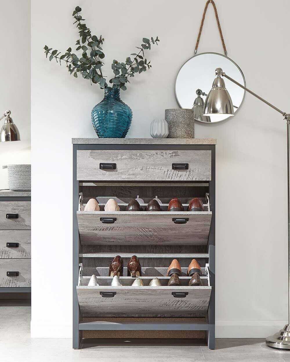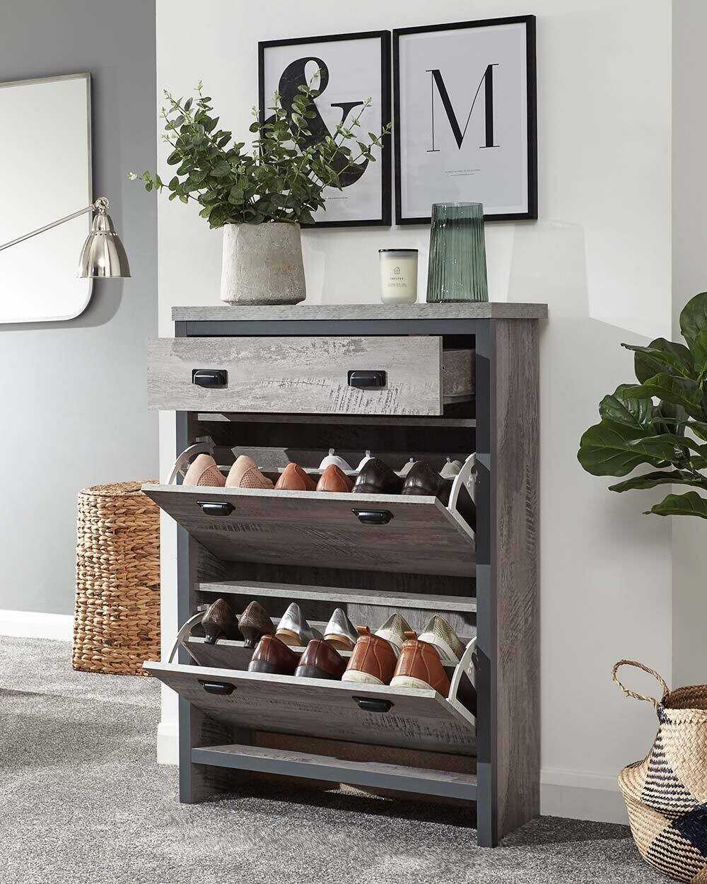 Boston 2 Tier 1 Drawer Shoe Cabinet Grey Slim Shoe Storage Hallway Porch