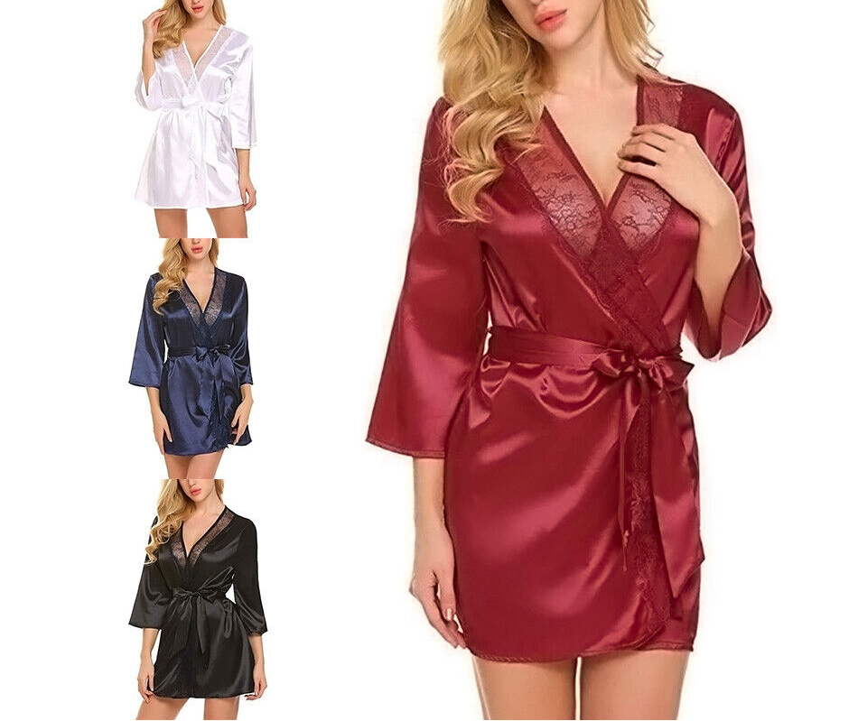 Bride Bridesmaid Satin Silk Sleepwear Wedding Bathrobe Kimono Robe Dressing Gown