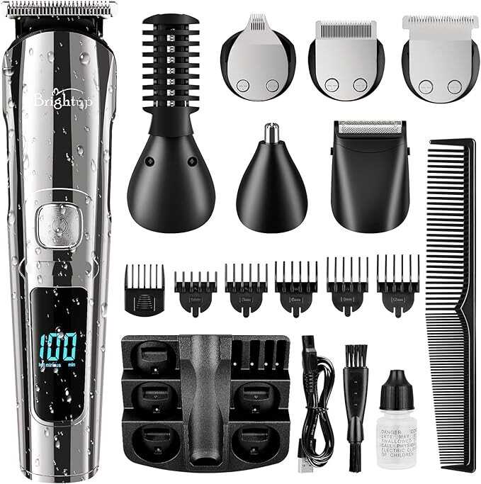 Brightup Beard Trimmer for Men - 19 Piece Mens Grooming Kit with Hair Clippers, Electric Razor, Shavers for Mustache, Body, Face, Ear, Nose Hair Trimmer, Gifts for Men, USB Rechargeable & LCD Display