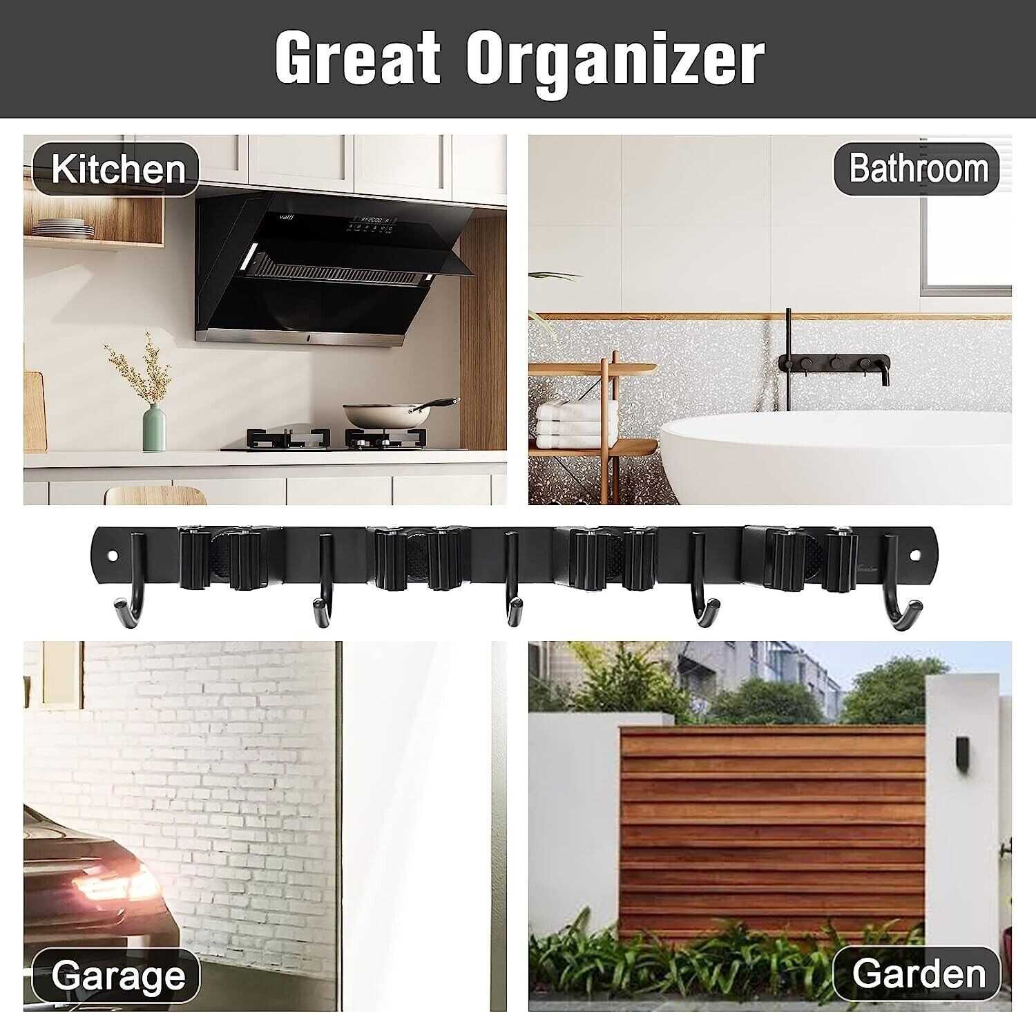 Broom Holder Wall Mount 4 Racks and 5 Hooks Broom Organizer Stora