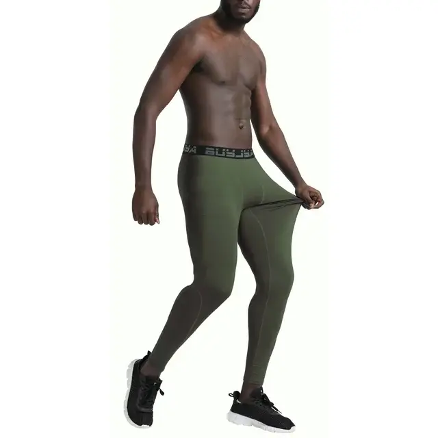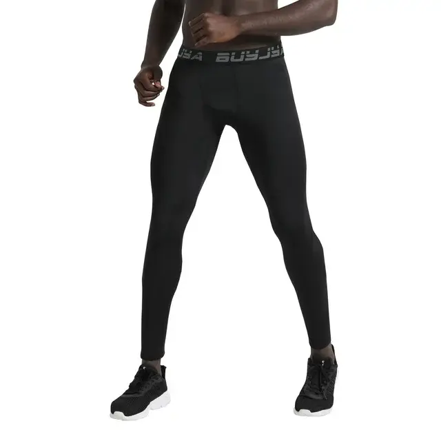 Brand Name: BUYJYA Gender: Men Gym tights men material: Polyester 90%, Spandex 10% The legging men is 6-needle 4-thread stitching for more durability. Men workout clothes function: High Elasticity, Absorb Sweat, Breathable.