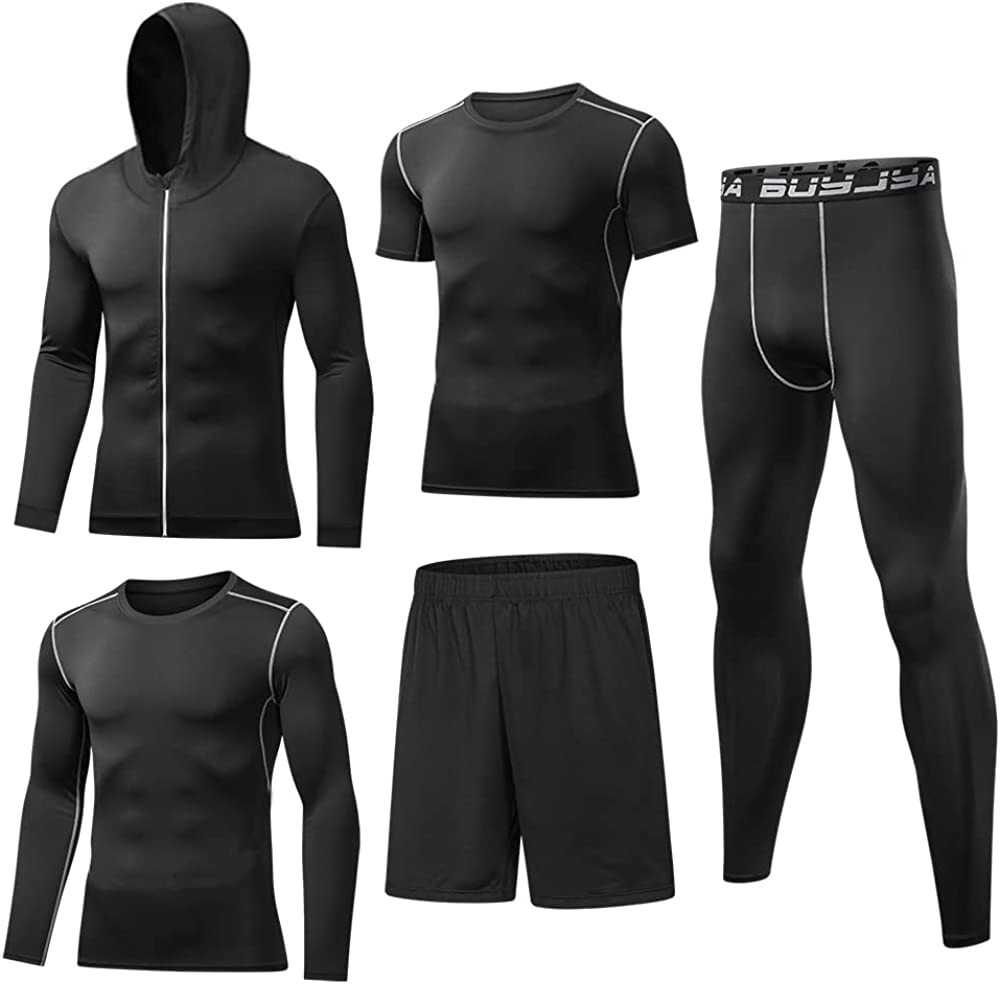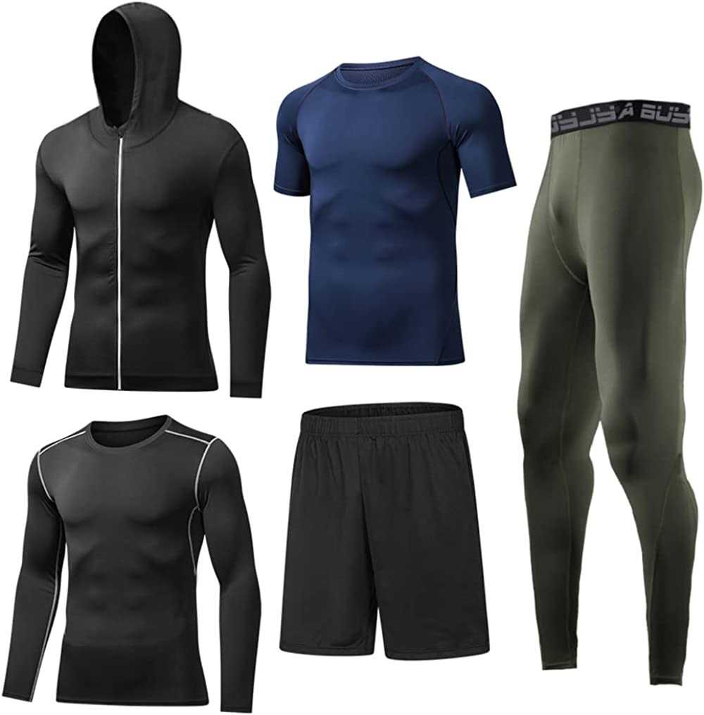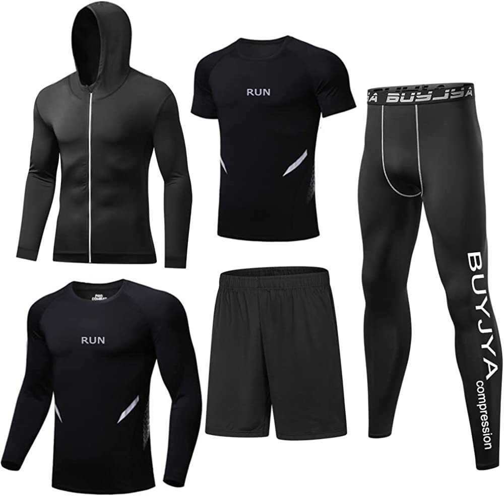 BUYJYA 5Pcs Men's Compression Pants Shirt Top Long Sleeve Jacket Athletic Sets G