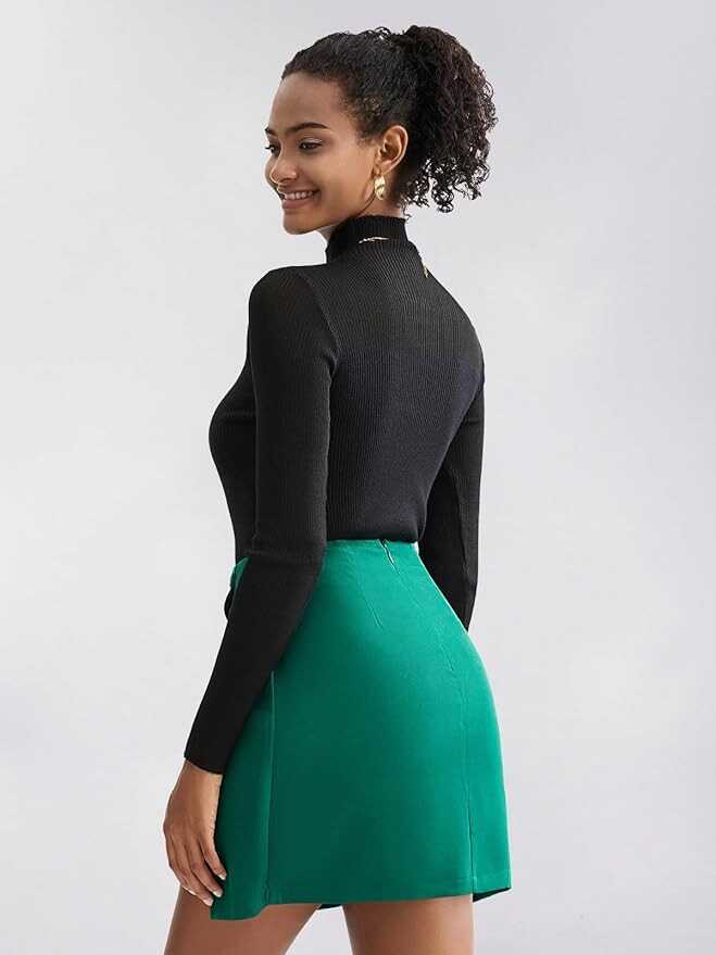 Feature: A line, Y2K, button, high waist, tulip hem, mini length, zipper back, asymmetrical. The combination of the mini length and bodycon silhouette beautifully accentuates your legs and curves. For women, junior, teen girls, school girl outfit.