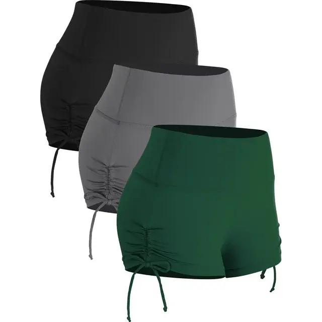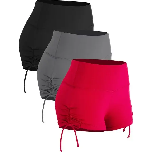 High waist athletic shorts with adjustable side ties for the ease of movements and desired length.