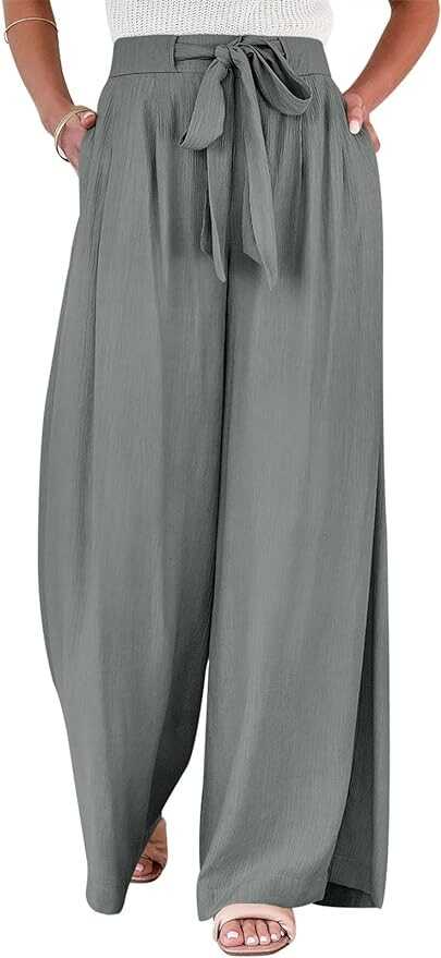 Caracilia Womens Wide Leg Palazzo Pants High Waisted Adjustable Tie Knot Flowy Trousers Casual Loose Lounge Pant with Pockets