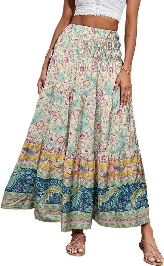 • ?UNIQUE DESIGN:This Floral Maxi Skirt Goes With Elastic Waist, Flared Pattern, Unique And Exquisite Ethnic Print, Ruffle Pleated Hem. Beautiful And Dressy Printed Details Are The Most Distinctive Highlight Of This A Line Skirt. With Comfy And Breezy Fabric, This Wrap Skirt Insure You a Cool Summer. Swing Tiered Skirt, A Staple In Every Women’s Wardrobe.
