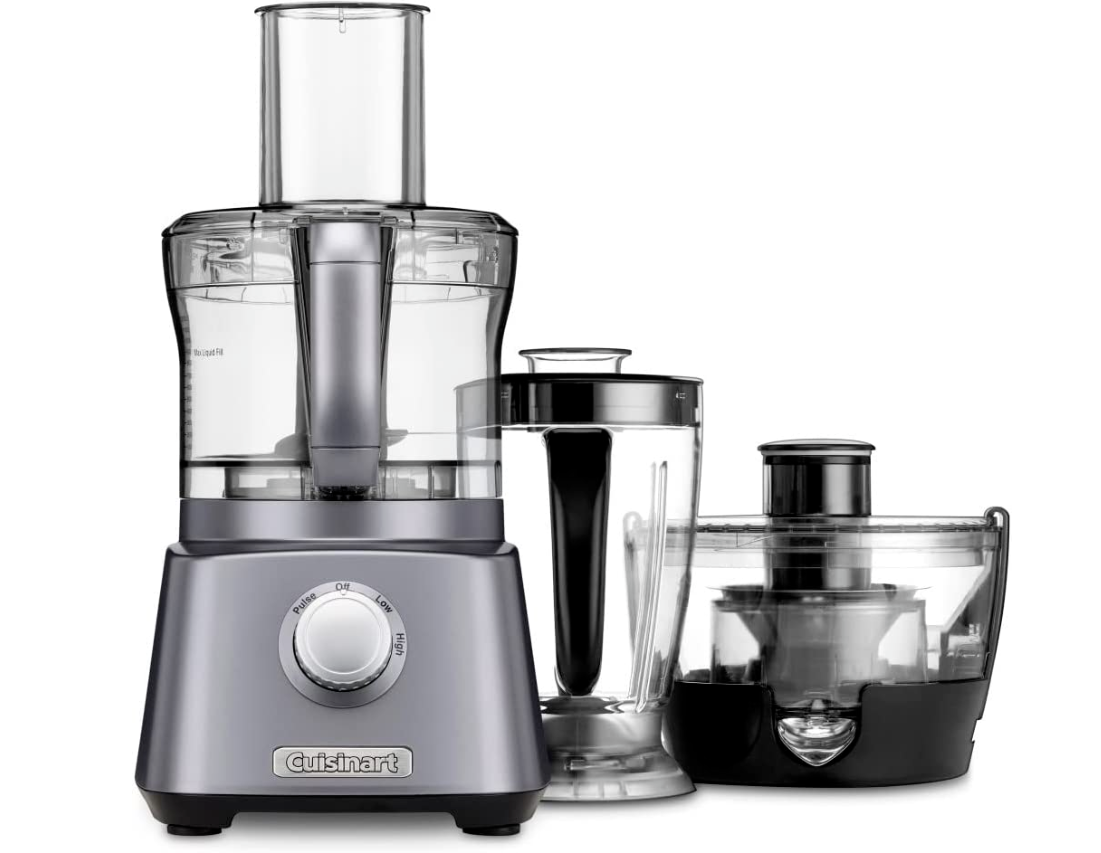 • OPTIONS: The 8-Cup Food Processor can mix, chop, puree, shred and more – The 40-oz. Blender covers the full range of blending tasks from smoothie to pureed soups – The Juice Extractor effortlessly turns whole fruits and vegetables into delicious juice