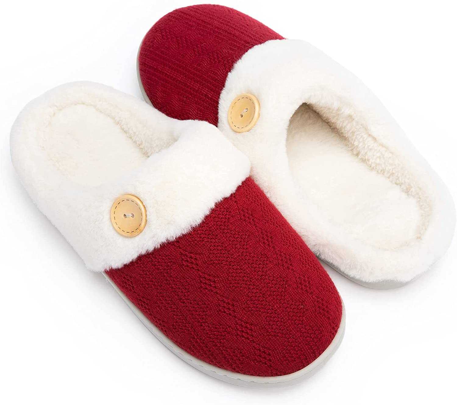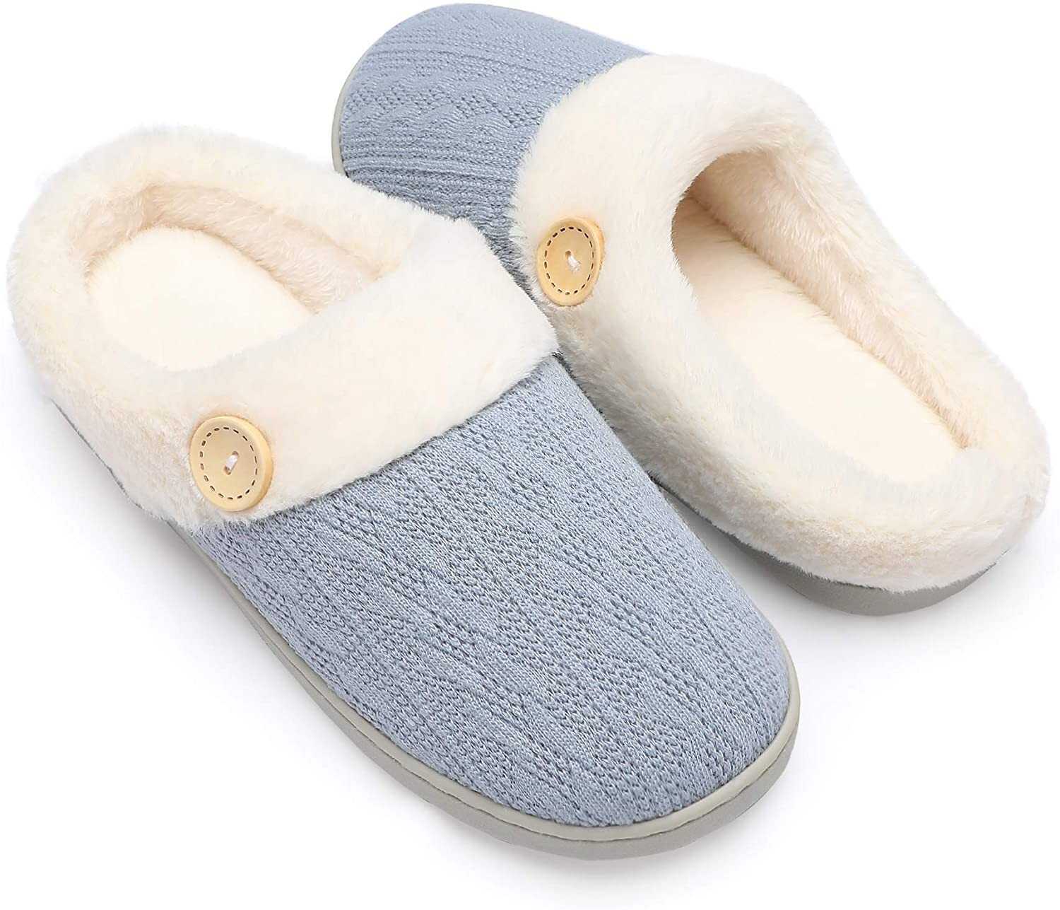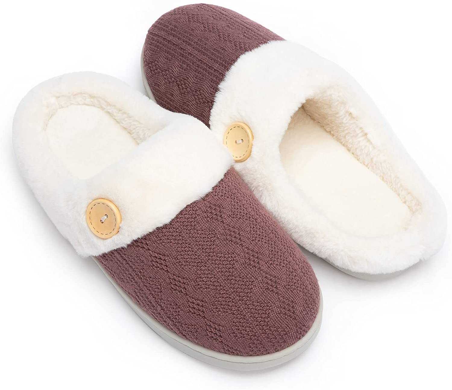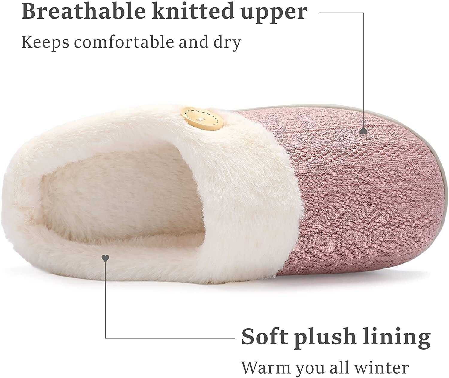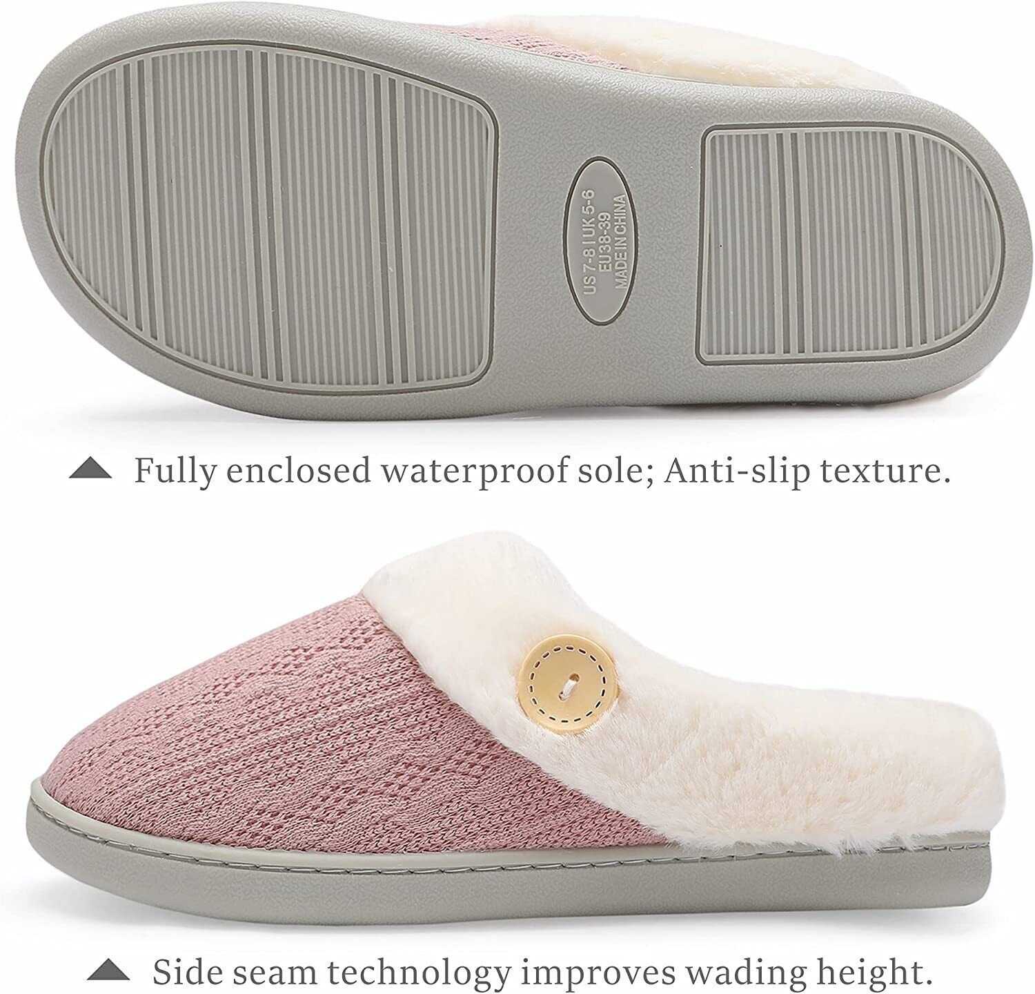 Chantomoo Womens Slipper Warm Comfy Memory Foam House Slippers Knitted Shoes Fau