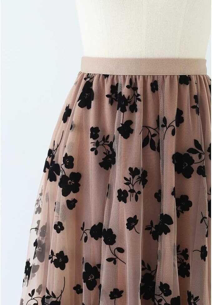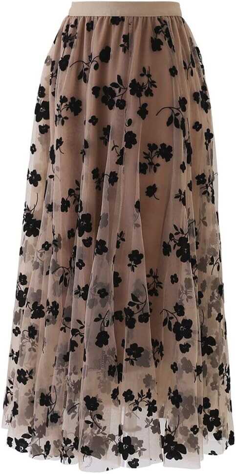 CHICWISH Women's 3D Posy Double-Layered Mesh Midi Skirt