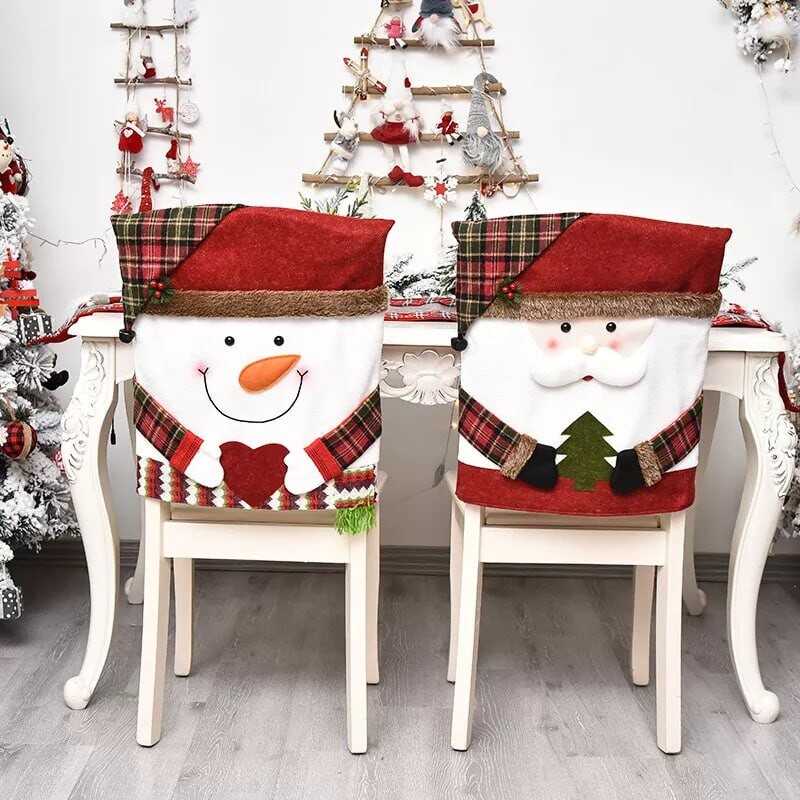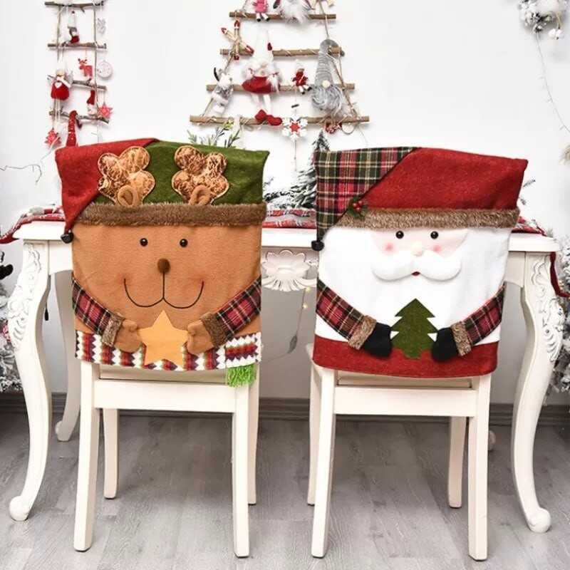 Christmas Chair Covers Dinner Table Decoration Santa Elk Snowman Xmas Home Decor