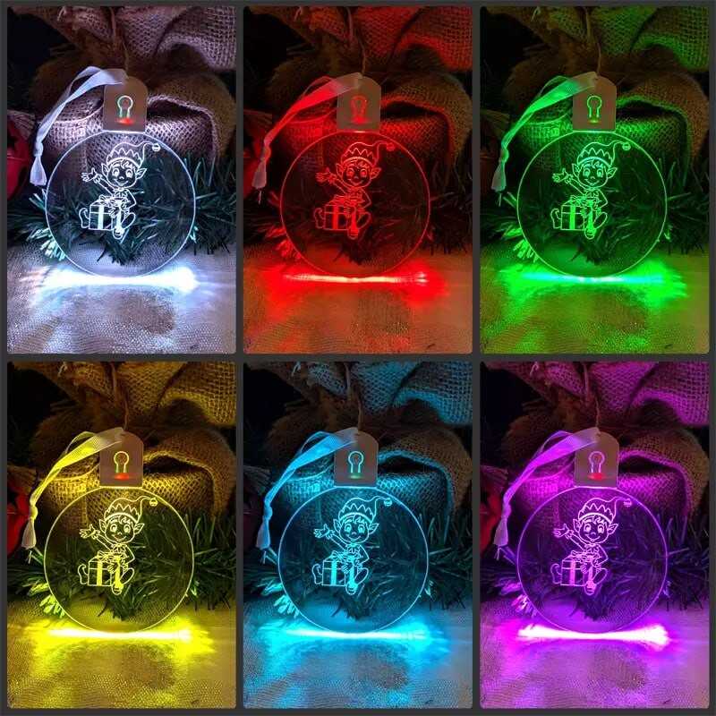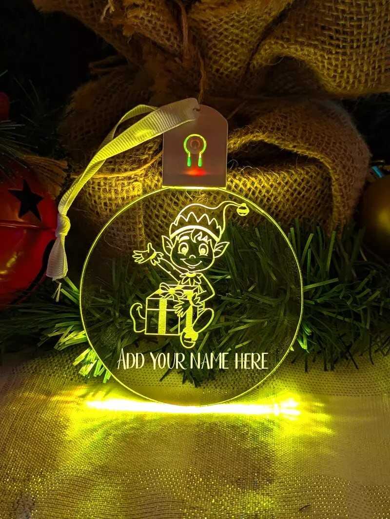 Christmas Elf Personalised Name Bauble LED Light Hanging Tree Decoration