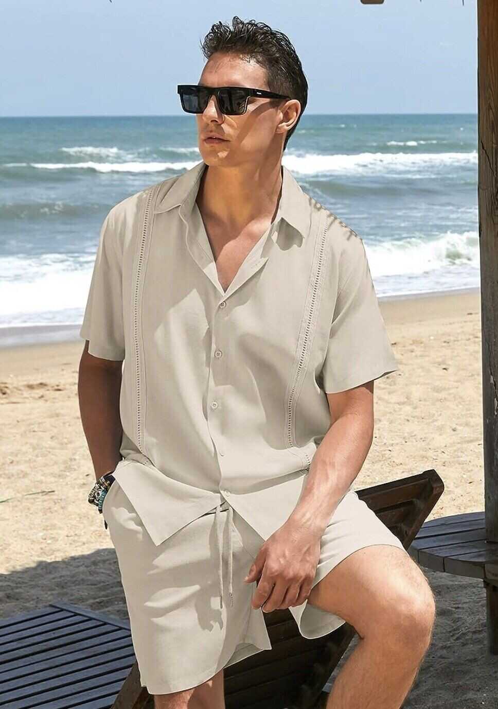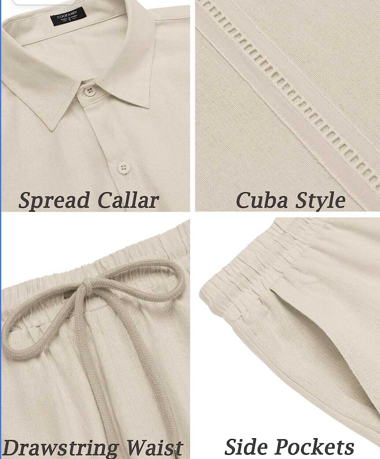COOFANDY Men 2 Piece Linen Set Beach Guayabera Outfit Button Down Shirt XL