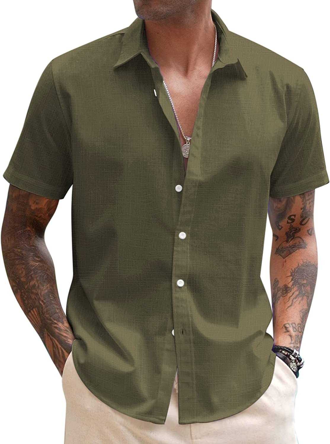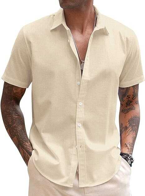 COOFANDY Men's Linen Casual Short Sleeve Shirts Button Down Summer Beach Shirt