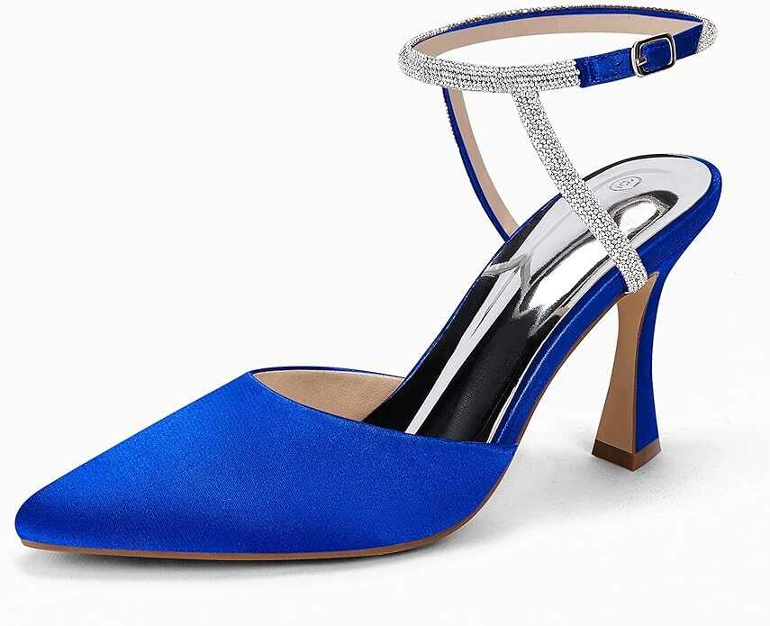 • ♥Features: Closed pointed toe, high stiletto heel pumps, glitter rhinestone, adjustable ankle buckle heeled, slingback, rubber sole sandals shoes for women.