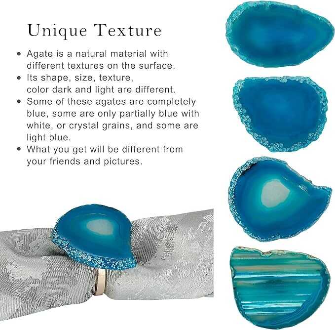 • ✔Special Gift: The unique agate make the napkins rings very special. It is a very good wedding party decortions and housewarming gift. The cloth napkin rings are also suitable for any table setting, Dinner Party, Wedding Reception, Christmas, Thanksgiving, Birthday, Banquet Events, etc.