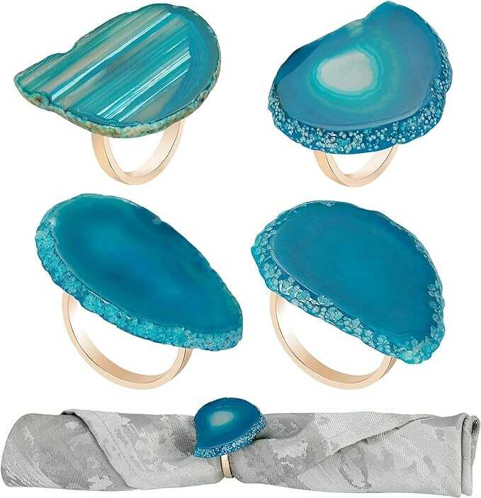 • ✔Specification: Napkin rings set of 4, the shape of agate piece is irregular, about 1.97-2.76 inch in length and 1.38-1.97 inch in width. The diameter of the metal ring is 1.47 inch and the width is 0.2 inch.