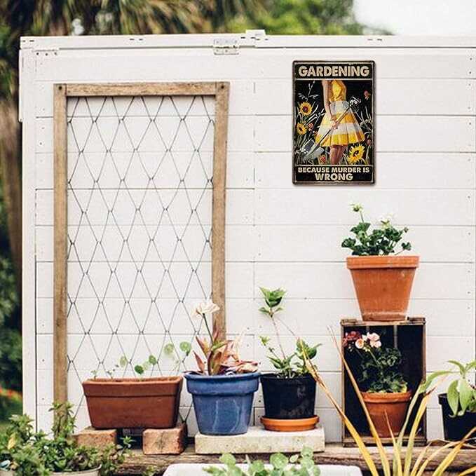 CrazySign Funny Garden Decor Garden Gifts Gardening Because Murder Is Wrong Metal Garden Sign Outdoor, 12" x 8", (263)