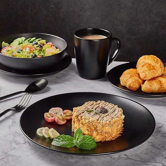 • [Perfect Gifts]: Complete luxurious black dinnerware sets make the perfect housewarming gift. Perfect for new couples, new homes and new beginnings. Gorgeous kitchen dishes are part of any new apartment essentials.