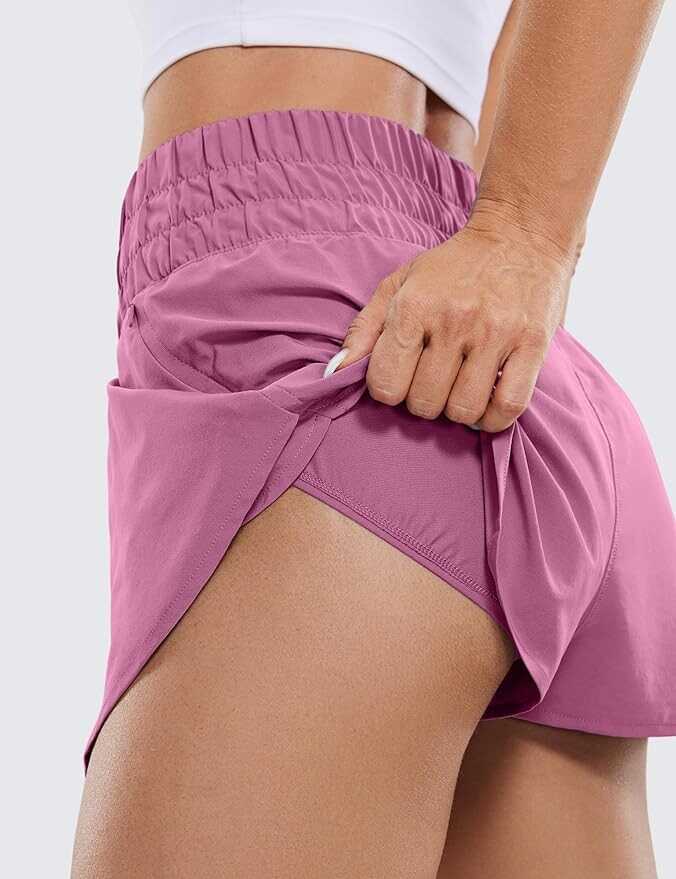 CRZ YOGA Athletic Shorts for Women High Waisted Flowy Ruffle Skirt Overlay Workout Running Tennis Shorts Zip Pocket