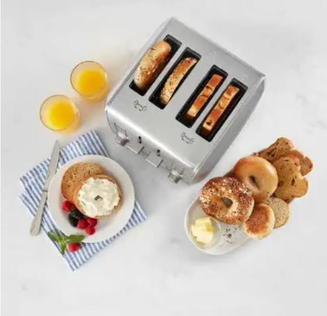 • Dual control panel with programmed settings for bread, bagels, English muffins, waffles, and toaster pastries
