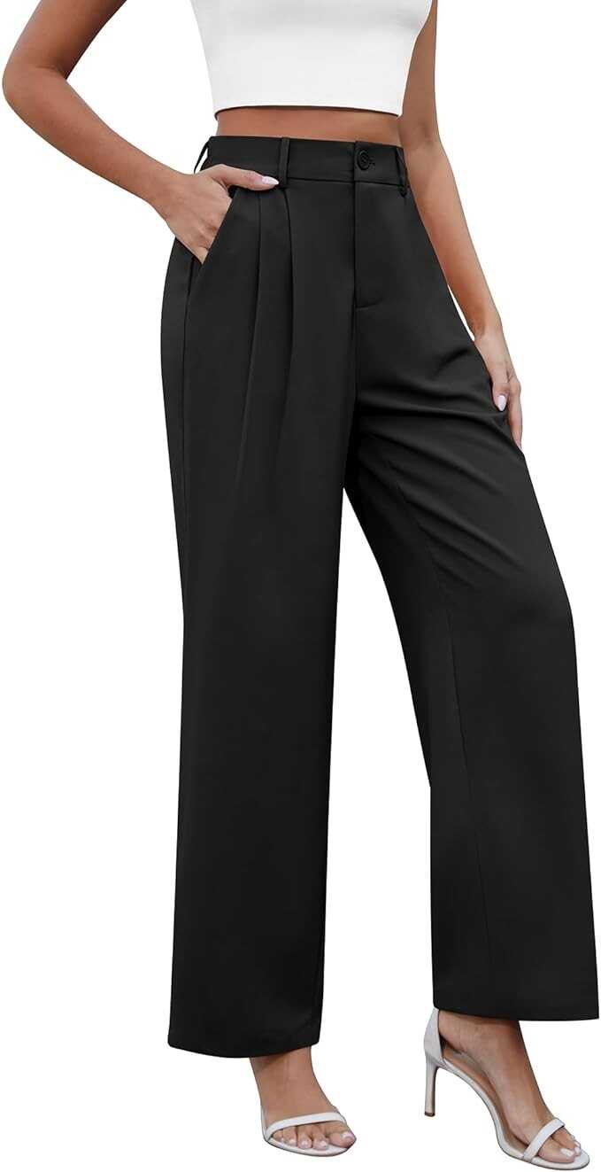 • Style: Suit pants, Wide leg pants, High waist work trousers, Elastic back design, Button and zipper in front, Business work pants, Loose fit, Casual style, Wide leg pants with pockets.