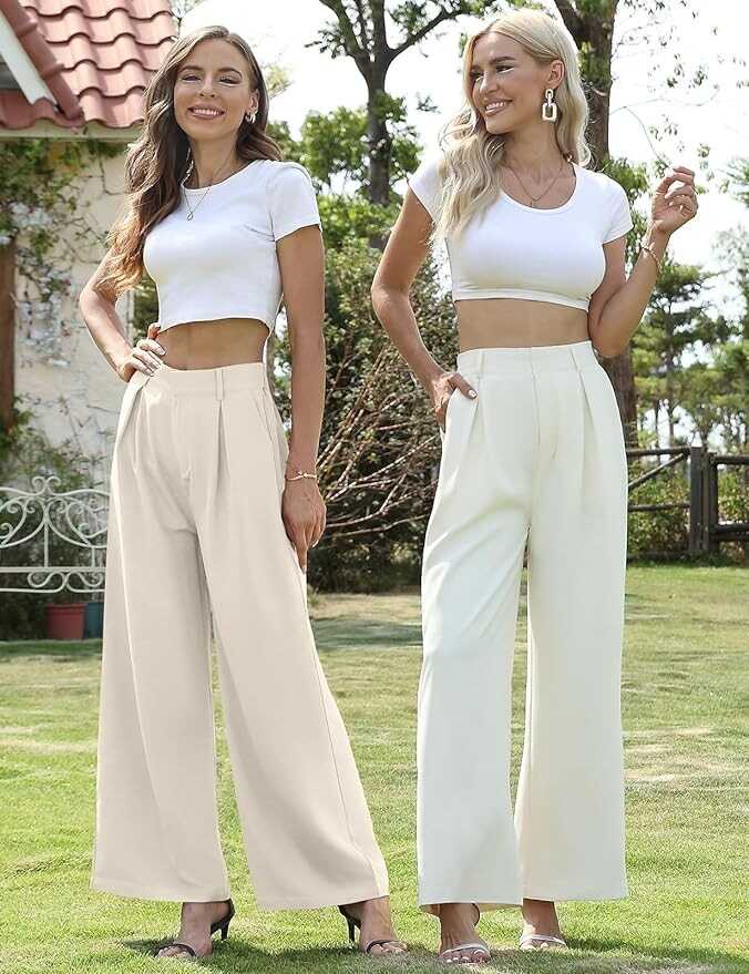 • Design - Back elastic waist, high-waisted wide leg style, pleated front, loose fit, breathable and soft fabric, zipper closure, two side pockets.