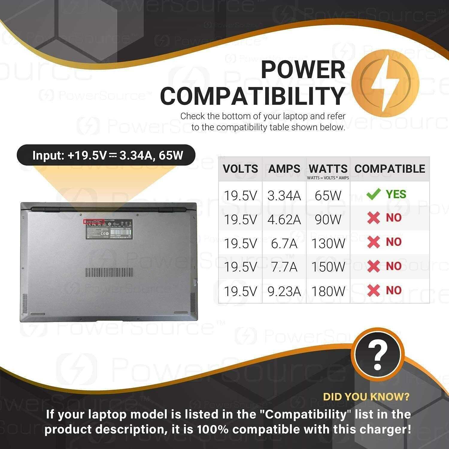 Dell Laptop AC Adapter Charger 65 Watt 19.5v 3.34a LA65NS2-01 Authentic charger