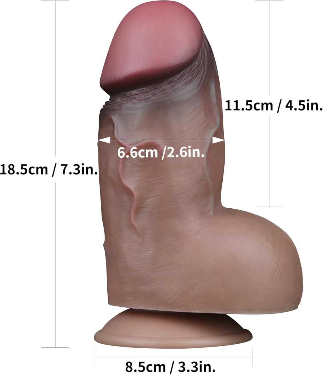 Proudly made of dual layer platinum silicone, incredibly lifelike with a dual-layered shaft, bulging head and textured balls that create authentic sensation both inside and out.