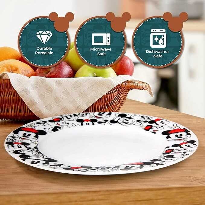• Vibrant Design: Enjoy mealtime with these eye-catching Minnie All Over ceramic dinner plates featuring a vibrant and playful design that adds a touch of whimsy to your dining table.