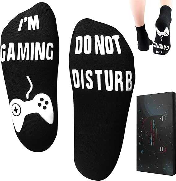 【Funny Novelty Gamer Socks For Boy Gifts】Do not disturb i'm gaming socks,Novelty socks is Anti-slip,with non skid rubber and funny words printed on each sock. Beware use caution when handling the socks if you have a latex allergy. Gaming socks are Machine Washable,hand washable with similar colors. Fathers Day Gifts gifts for dad who wants nothing,gamer gifts, anniversary gifts gift for boyfriend,funny socks for men,stocking stuffers for men.