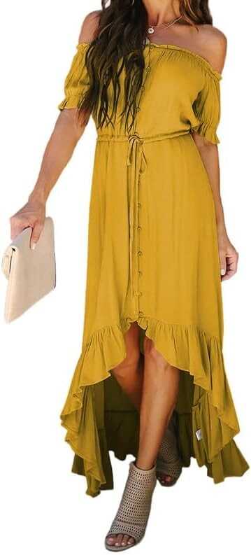 Women Dress Off The Shoulder High Low Hem Maxi Dresses