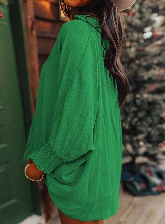 • Features: Stylish v neck,loose fit flowy oversized style, half smock sleeve shirts,classic solid color design tunic tops,casual dressy blouses for women.