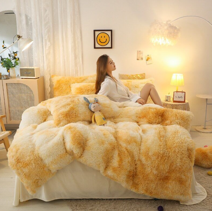 Duvet Cover Set Long Mink Hair Warm Bedding Linen 1/3/4/5pcs Queen Fannel Fleece Heart Cushion Pillowcase Dropship US FR