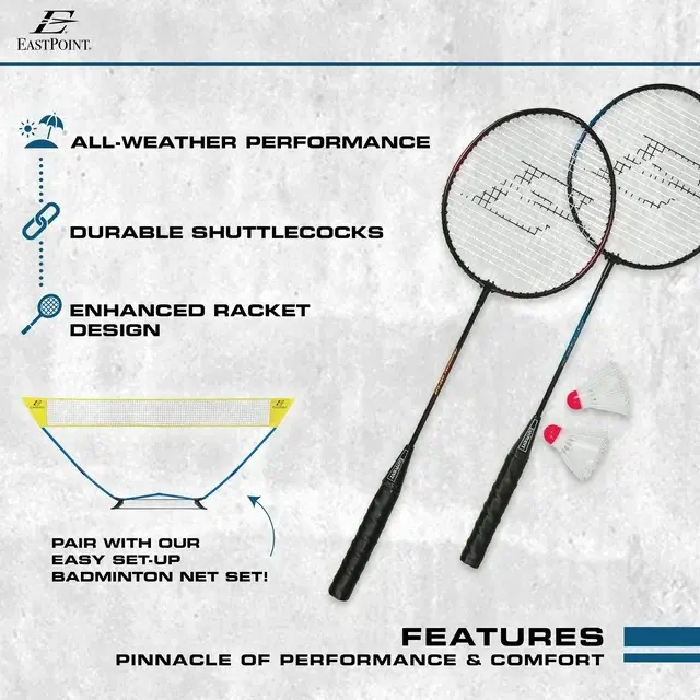 • Expand Your Collection: Pair this badminton set with EastPoint's Easy Set Up Badminton set for a complete backyard badminton experience. (Note: Badminton net not included in this set.)