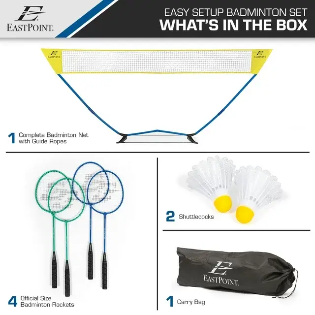 EastPoint Sports Easy Setup Regulation Size Outdoor Badminton Game Set