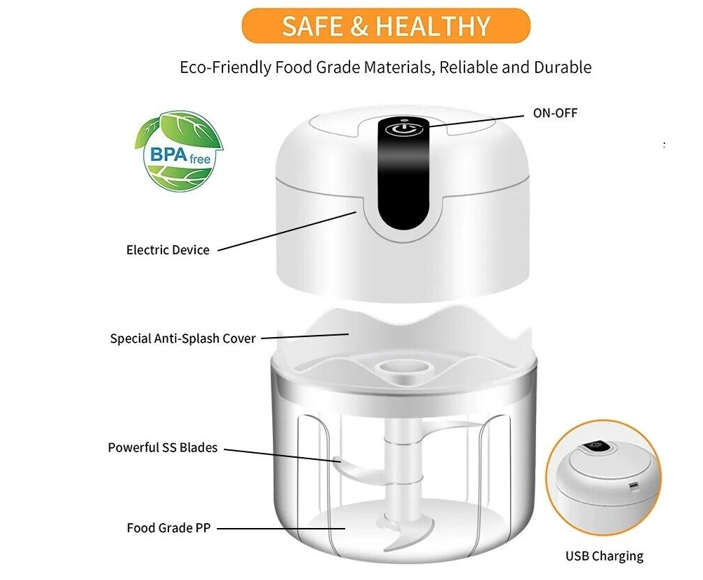 ?【Portable USB Charging】: With its compact size and USB charging capabilities, this chopper is perfect for family camping trips or other outdoor adventures. ?️ It's a small but mighty helper in your life!