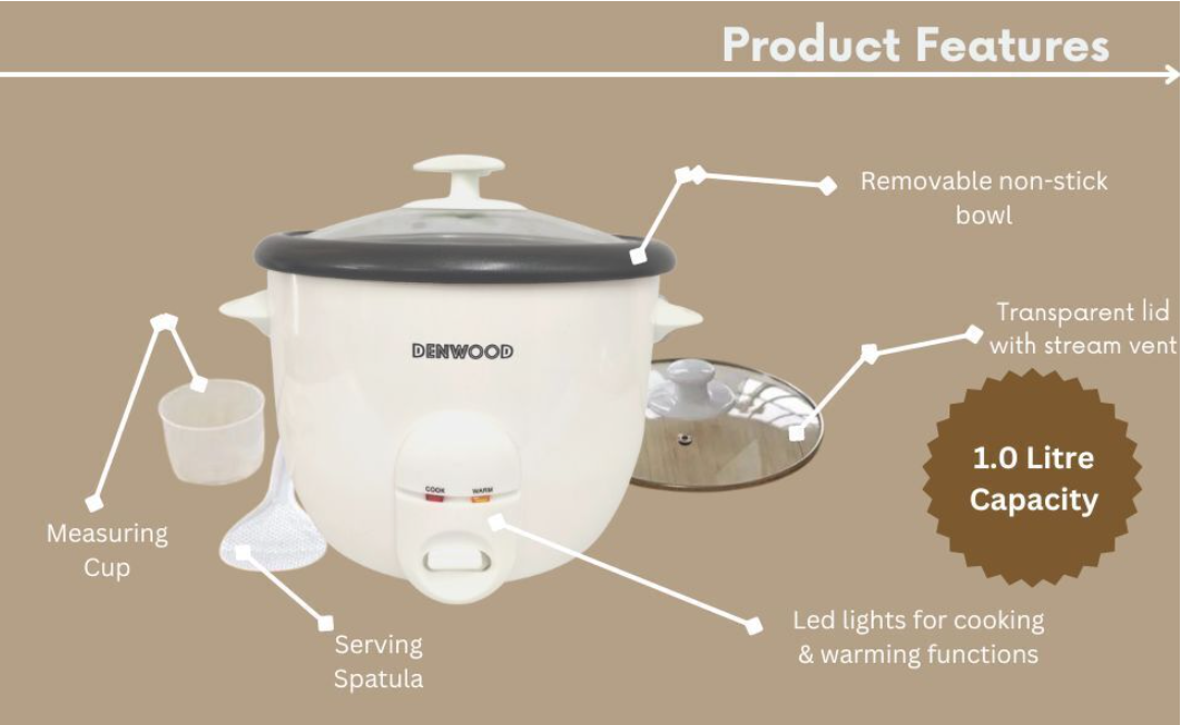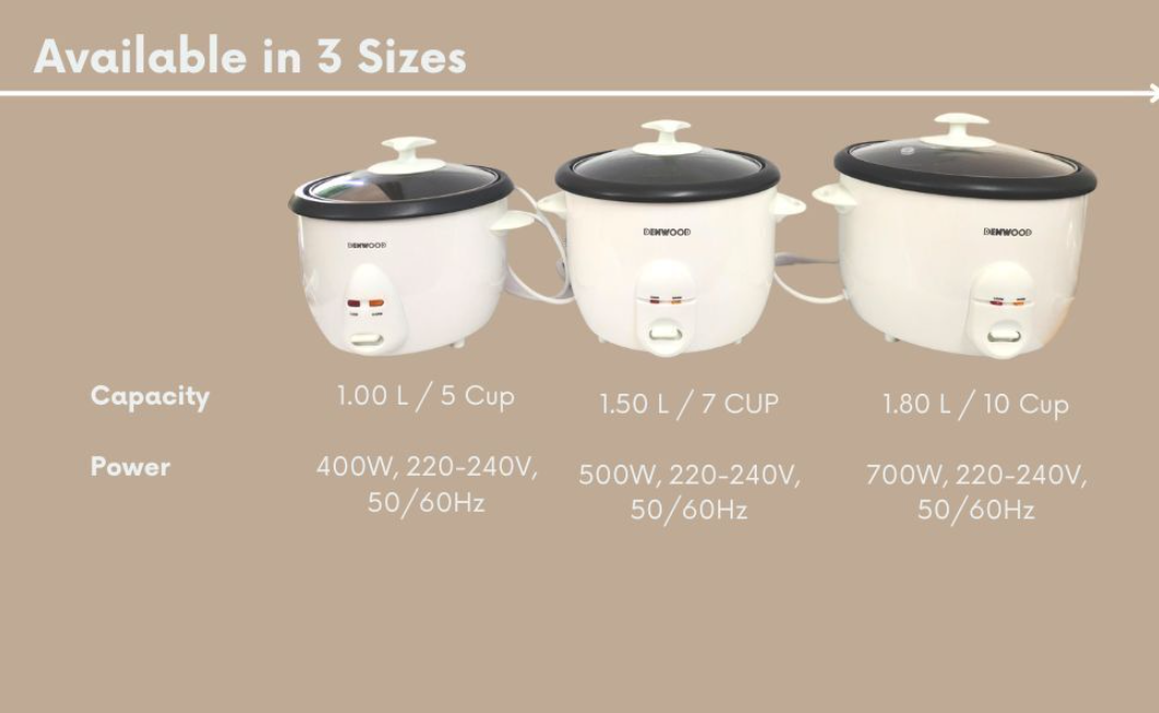 Electric Rice Cooker - Non-Stick Removable Bowl, Keep Warm Function 1.0L to 1.8L