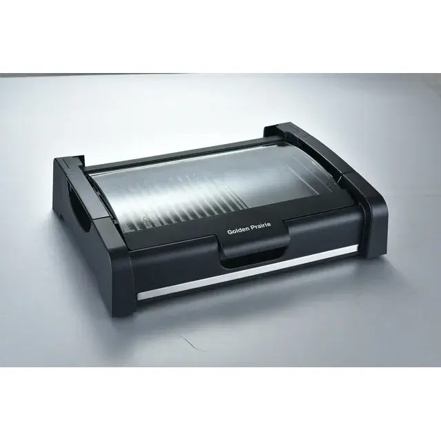 • ?Safety Certification & Warranty Commitment?Golden Prairie's indoor electric grill has safety certifications, long-lasting durability, and it's designed for grilling enthusiasts. Provide you with 1 year warranty! Buy with confidence and use with peace of mind. Grill package includes: grill base, drip tray, extra large non-stick baking pan, thermostat control knob, instruction manual. If you encounter any problems during use, you can contact us via email at any time, thank you!