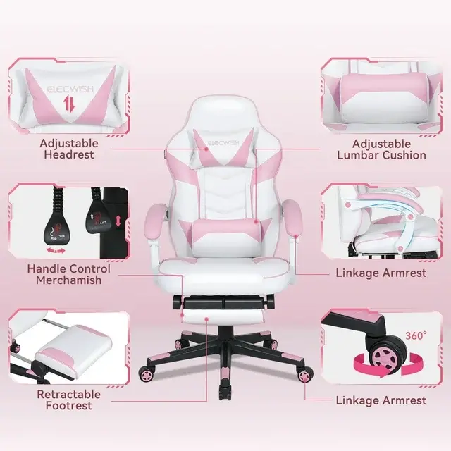 ELECWISH Massage Chair combines luxurious comfort and style with a 360-degree swivel design and five wheels on the base that can be rolled in all directions to provide flexibility and freedom of movement. The backrest swivels 90 to 150 degrees for comfort during long working hours. The armrests and adjustable seat height meet all your height and seating comfort needs. The lumbar and neck supports are height-adjustable for a more comfortable sitting position.