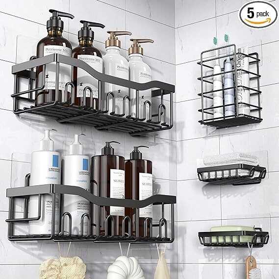 • 【? ??????? ?????? ????????? ??? ??? ?????????? ???????? ??????? ?????】The bathroom organizer comes with 5 pieces for different uses, including 2 shower caddies, 2 soap holders,1 toothbrush holder and 5 adhesives. Accommodate wash supplies or cooking seasonings easily with large capacities to make full use of space and facilitate your life; ideal for the dorm/bathroom/kitchen/toilet/tool room.